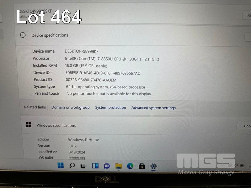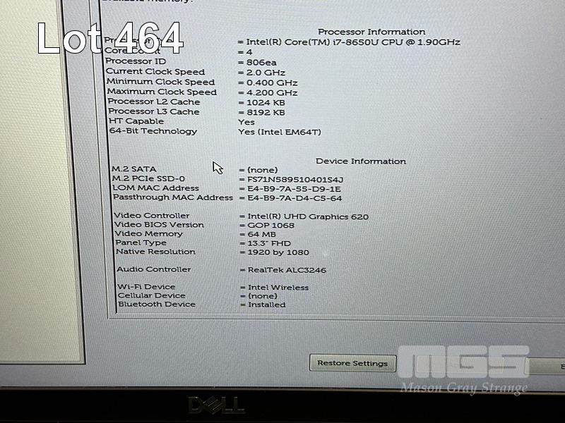 LAPTOP, DELL LATITUDE 7390, CORE i7 8650U (8TH GEN) @ 1.9GHz, 16GB DDR4 RAM, 512GB NVMe M.2 SSD, 13.3" WIDESCREEN (1920x1080), INTEL UHD GRAPHICS 620, Wi-Fi, BLUETOOTH, WINDOWS 11 HOME INSTALLED & POWER SUPPLY (NOTE: SMALL BRIGHT SPOT ON SCREEN) S/N:7D18JR2