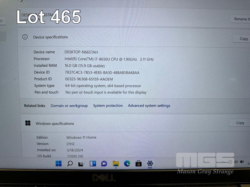LAPTOP, DELL LATITUDE 7390, CORE i7 8650U (8TH GEN) @ 1.9GHz, 16GB DDR4 RAM, 512GB M.2 SSD, 13.3" WIDESCREEN (1920x1080), INTEL UHD GRAPHICS 620, Wi-Fi, BLUETOOTH, WINDOWS 11 HOME INSTALLED & POWER SUPPLY (NOTE: BRIGHT SPOT ON SCREEN) S/N:75BFLQ2