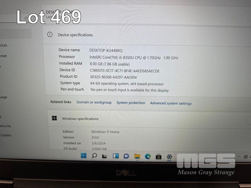 LAPTOP, DELL LATITUDE 5490, CORE i5 8350U (8TH GEN) @ 1.7GHz, 8GB DDR4 RAM, 512GB M.2 SSD, 14" WIDESCREEN (1920x1080), INTEL UHD GRAPHICS 620, Wi-Fi, BLUETOOTH, WINDOWS 11 HOME INSTALLED & POWER SUPPLY S/N:9P3G7S2