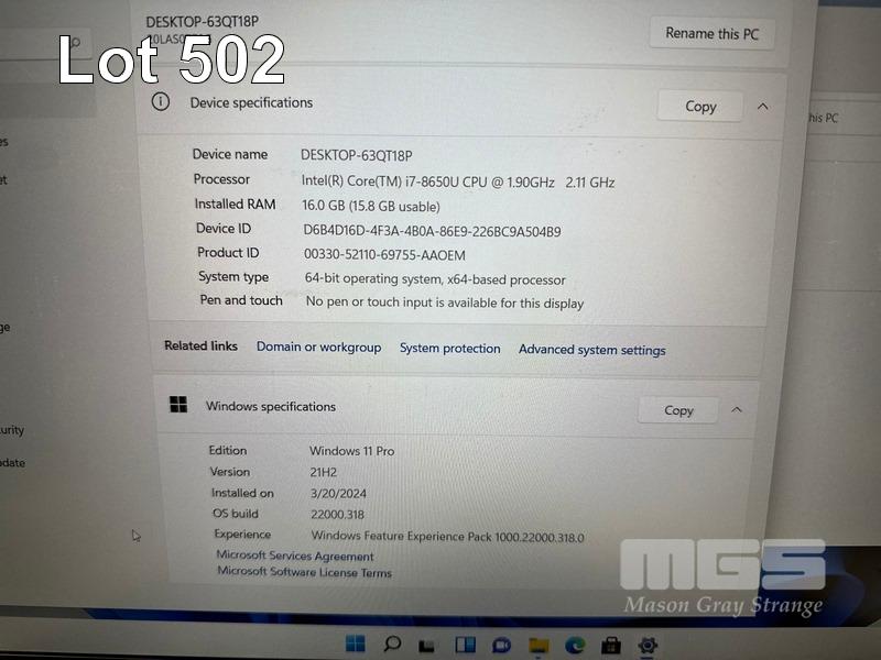 LAPTOP, LENOVO THINKPAD T580, TYPE 20LA, CORE i7 8650U (8TH GEN) @ 1.9GHz, 16GB DDR4 RAM, 512GB NVMe M.2 SSD, 15.6" WIDESCREEN (1920x1080), INTEL UHD GRAPHICS, Wi-Fi, BLUETOOTH, WINDOWS 11 PRO INSTALLED (NO USB-C POWER SUPPLY) (NOTE: MARKS ON SCREEN) S/N:R90VM476
