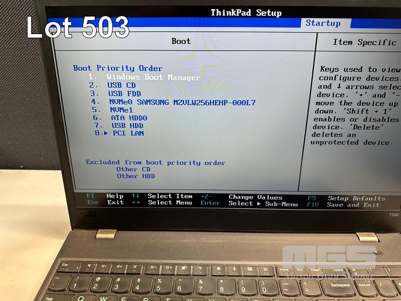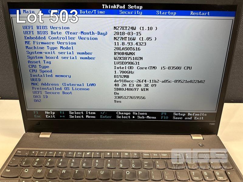 LAPTOP, LENOVO THINKPAD T580, TYPE 20LA, CORE i5 8350U (8TH GEN) @ 1.7GHz, 8GB DDR4 RAM, 256GB NVMe M.2 SSD, 15.6" WIDESCREEN (1920x1080), INTEL UHD GRAPHICS, Wi-Fi, BLUETOOTH, WINDOWS 11 PRO INSTALLED (NO USB-C POWER SUPPLY) (NOTE: MARKS ON SCREEN) S/N:R90R4WNX