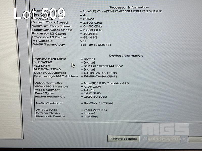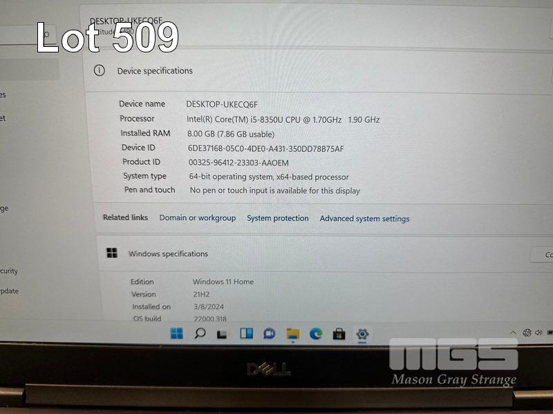 LAPTOP, DELL LATITUDE 5490, CORE i5 8350U (8TH GEN) @ 1.7GHz, 8GB DDR4 RAM, 512GB M.2 SSD, 14" WIDESCREEN (1920x1080), INTEL UHD GRAPHICS 620, Wi-Fi, BLUETOOTH, WINDOWS 11 HOME INSTALLED & POWER SUPPLY (NOTE: MARKS ON SCREEN) S/N:DRMXRQ2