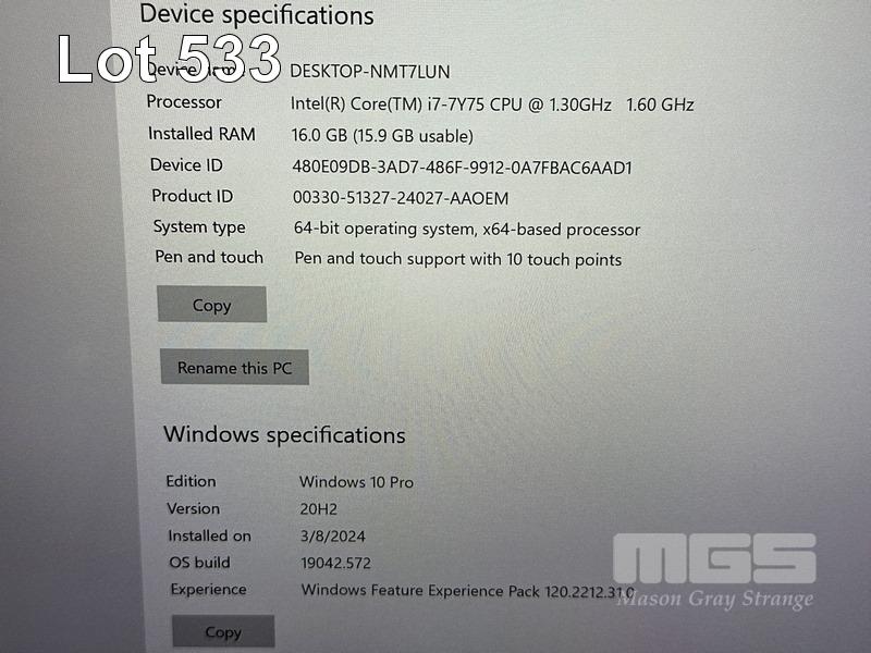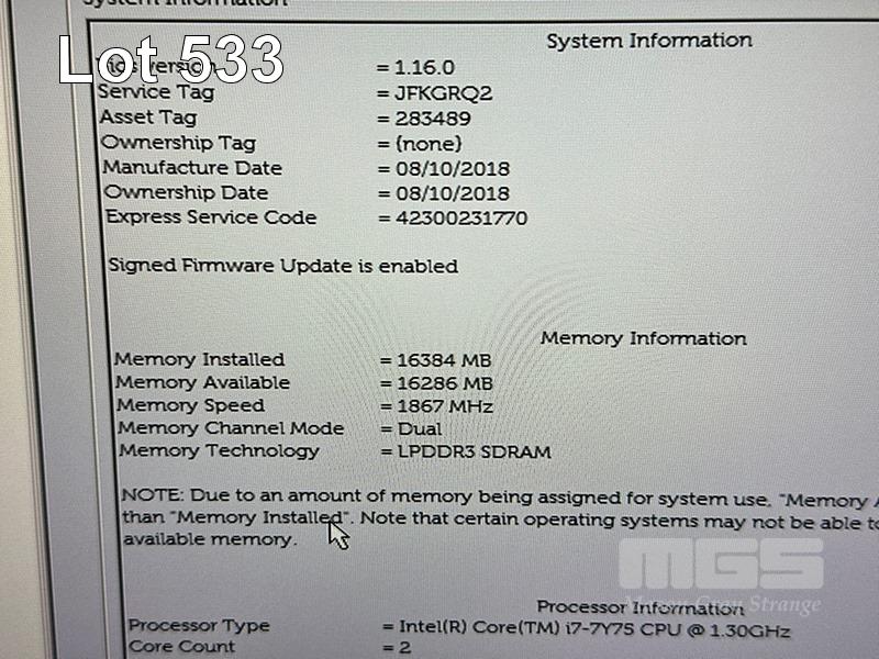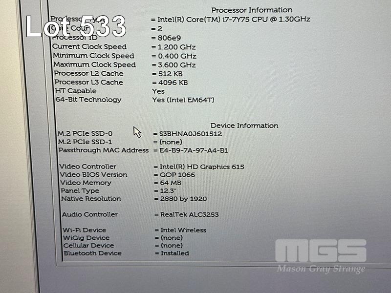 TABLET PC, DELL LATITUDE 7285, CORE i7 7Y75 (7TH GEN) @ 1.3GHz, 16GB DDR3 RAM, 512GB NVMe M.2 SSD, 12.3" TOUCHSCREEN (2880x1920), INTEL HD GRAPHICS 615, Wi-Fi, BLUETOOTH, WINDOWS 10 PRO INSTALLED, STYLUS, KEYBOARD (NO USB-C POWER SUPPLY) (NOTE: BATTERY HOLDING NOT CHARGE) S/N:JFKGRQ2