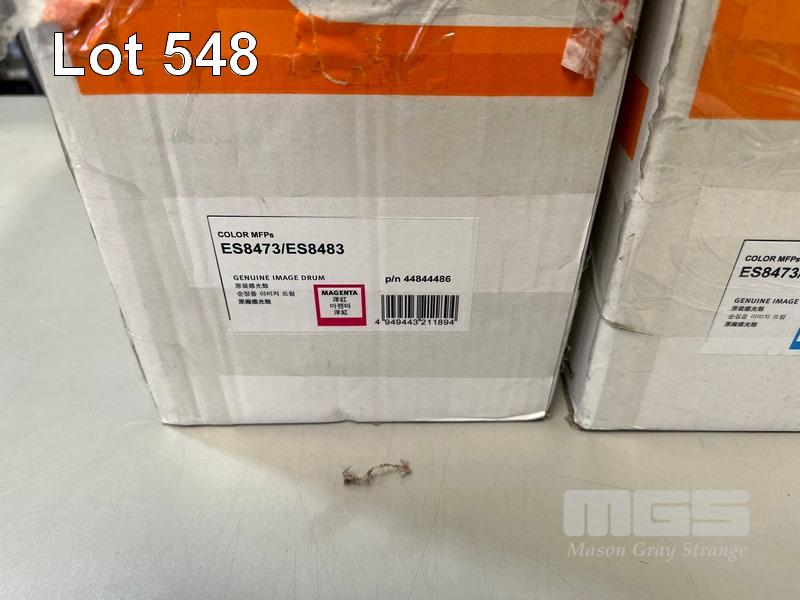 QTY OKI LASER PRINTER DRUM CARTRIDGES INC. 2 x MAGENTA IMAGE DRUM 44844486, 2 x CYAN IMAGE DRUM 44844487, 3 x BLACK IMAGE DRUM 44844488