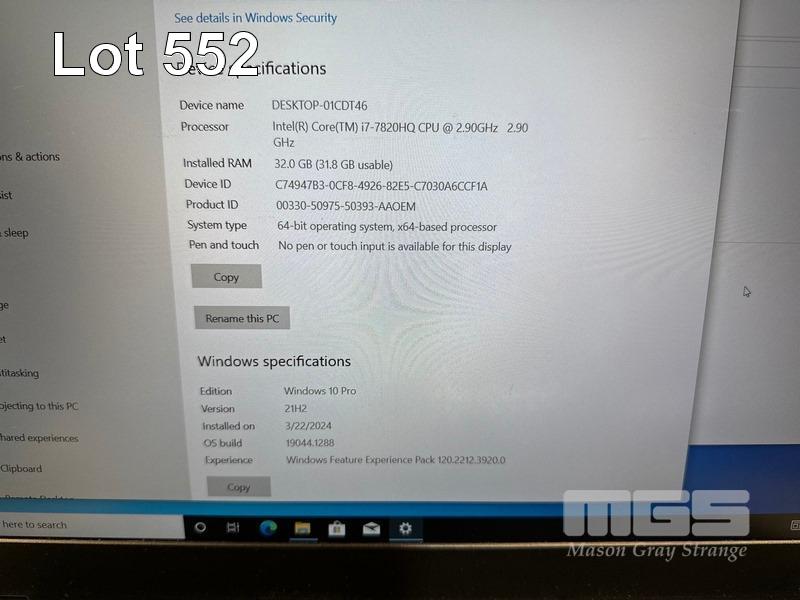 LAPTOP, LENOVO THINKPAD P51 MOBILE WORKSTATION, TYPE 20HJ, CORE i7 7820HQ (7TH GEN) @ 2.9GHz, 32GB DDR4 RAM, 512GB NVMe M.2 SSD, 15.6" WIDESCREEN (1920x1080), 4GB NVIDIA QUADRO M2200 VIDEO, Wi-Fi, BLUETOOTH, WINDOWS 10 PRO INSTALLED & POWER SUPPLY (NOTE: MARKS ON SCREEN) S/N:PF0Y35W1