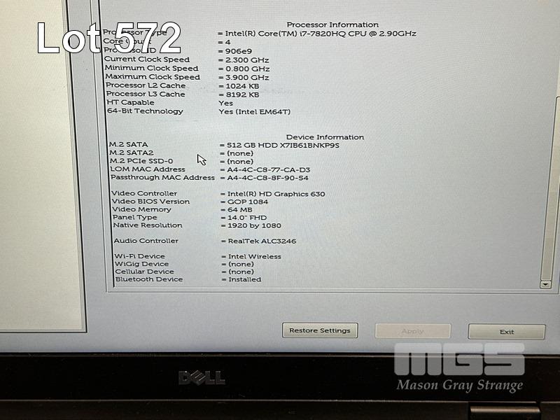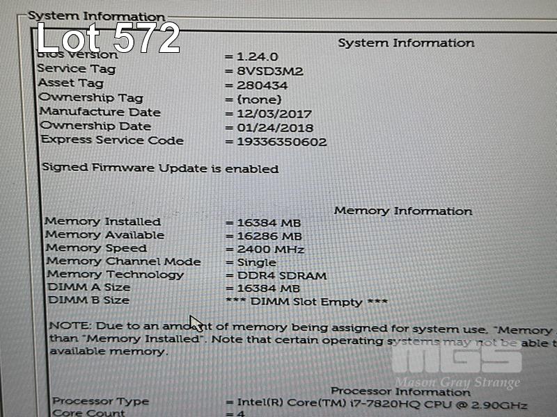 LAPTOP, DELL LATITUDE 5480, CORE i7 7820HQ (7TH GEN) @ 2.9GHz, 16GB DDR4 RAM, 512GB NVMe M.2 SSD, 14" WIDESCREEN (1920x1080), 2GB NVIDIA GEFORCE 930MX VIDEO, INTEL HD GRAPHICS 630, Wi-Fi, BLUETOOTH, WINDOWS 10 HOME INSTALLED & POWER SUPPLY (NOTE: MINOR DAMAGE TO CASING, MARKS ON SCREEN) S/N:8VSD3M2