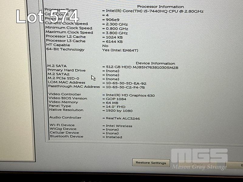 LAPTOP, DELL LATITUDE 5480, CORE i5 7440HQ (7TH GEN) @ 2.8GHz, 8GB DDR4 RAM, 512GB M.2 SSD, 14" WIDESCREEN (1920x1080), INTEL HD GRAPHICS 630, Wi-Fi, BLUETOOTH, WINDOWS 10 HOME INSTALLED & POWER SUPPLY S/N:1X8DVP2
