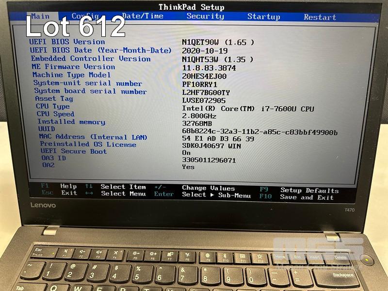 LAPTOP, LENOVO THINKPAD T470, TYPE 20HE, CORE i7 7600U (7TH GEN) @ 2.8GHz, 32GB DDR4 RAM, 512GB NVMe M.2 SSD, 14" WIDESCREEN (1920x1080), INTEL HD VIDEO, Wi-Fi, BLUETOOTH, WINDOWS 10 PRO INSTALLED & POWER SUPPLY (NOTE: MARKS ON SCREEN) S/N:PF10RRY1