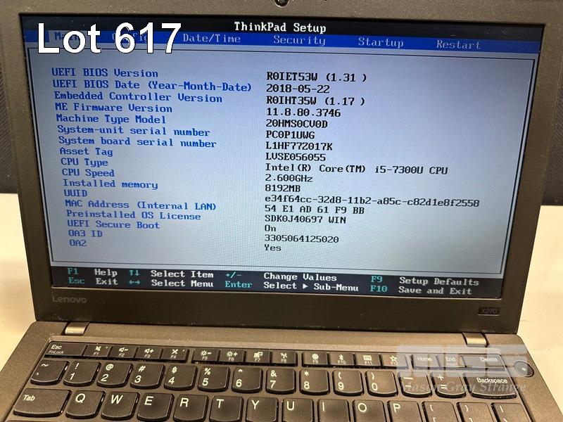 LAPTOP, LENOVO THINKPAD X270, TYPE 20HM, CORE i5 7300U (7TH GEN) @ 2.6GHz, 8GB DDR4 RAM, 256GB NVMe SSD, 12.5" WIDESCREEN (1366x768), INTEL HD VIDEO, Wi-Fi, BLUETOOTH, WINDOWS 10 PRO INSTALLED & POWER SUPPLY S/N:PC0P1UWG