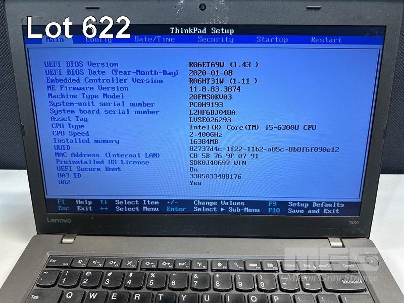LAPTOP, LENOVO THINKPAD T460, TYPE 20FM, CORE i5 6300U (6TH GEN) @ 2.4GHz, 16GB DDR3 RAM, 275GB SSD, 14" WIDESCREEN (1366x768), INTEL HD VIDEO, Wi-Fi, BLUETOOTH, WINDOWS 10 PRO INSTALLED & POWER SUPPLY (NOTE: BRIGHT SPOT & SMALL SCRATCH ON SCREEN) S/N:PC0H9193
