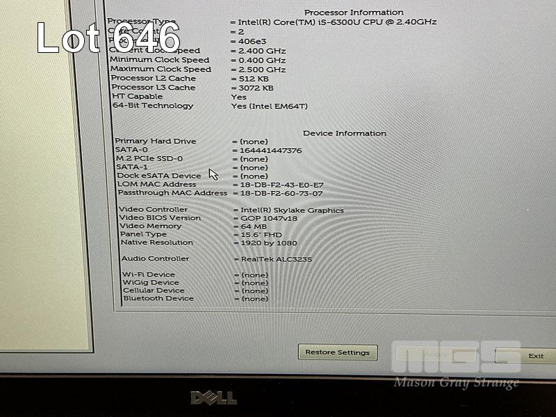 LAPTOP, DELL LATITUDE E5570, CORE i5 6300U (6TH GEN) @ 2.4GHz, 8GB DDR3 RAM, 256GB M.2 SSD, 15.6" WIDESCREEN (1920x1080), INTEL SKYLAKE GRAPHICS, Wi-Fi, BLUETOOTH, WINDOWS 10 HOME INSTALLED, DOCKING STATION & POWER SUPPLY S/N:8SSTPF2
