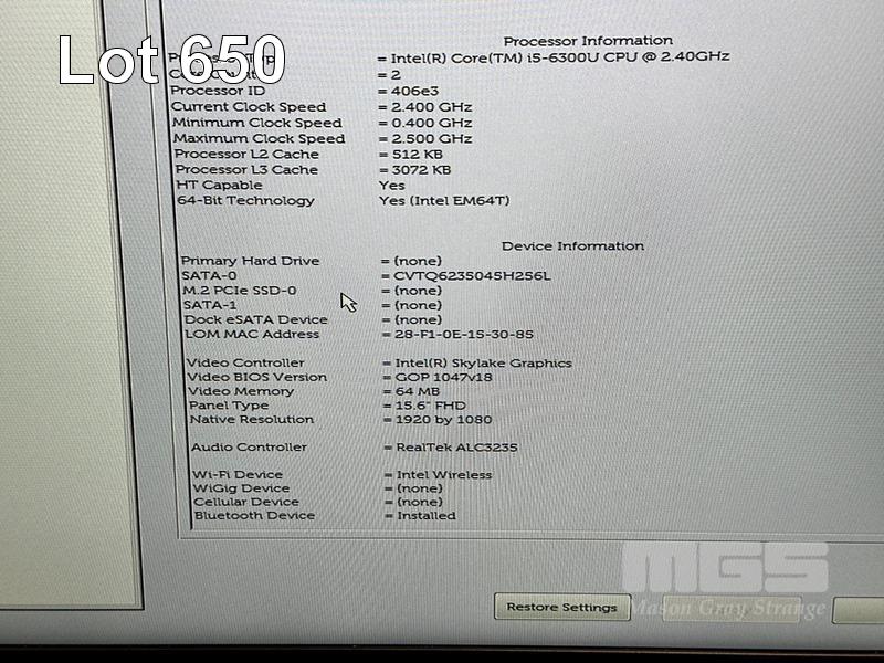 LAPTOP, DELL LATITUDE E5570, CORE i5 6300U (6TH GEN) @ 2.4GHz, 8GB DDR3 RAM, 256GB M.2 SSD, 15.6" WIDESCREEN (1920x1080), INTEL SKYLAKE GRAPHICS, Wi-Fi, BLUETOOTH, WINDOWS 10 HOME INSTALLED, DOCKING STATION & POWER SUPPLY S/N:C1Y9JC2