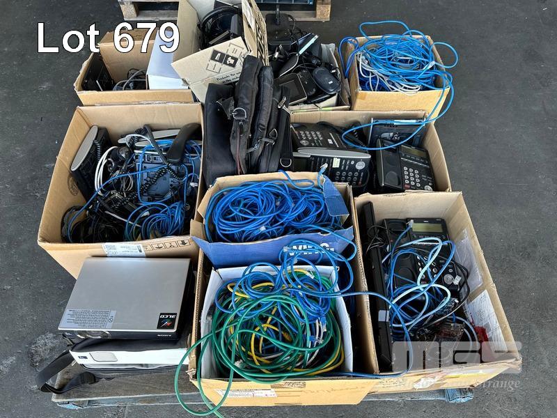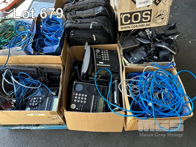 1 x PALLET LOT ASST NETWORK CABLES, NEC PHONES, HEADSETS, PROJECTORS ETC