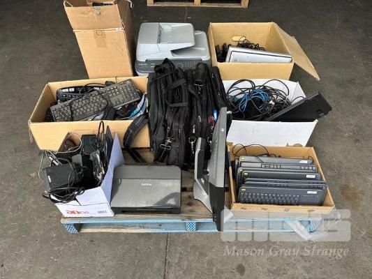 1 x PALLET LOT ASST KEYBOARDS, PRINTER, DOCUMENT SCANNER, LAPTOP BAGS, SPEAKERS ETC