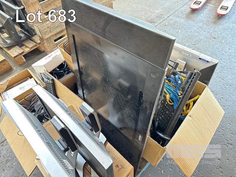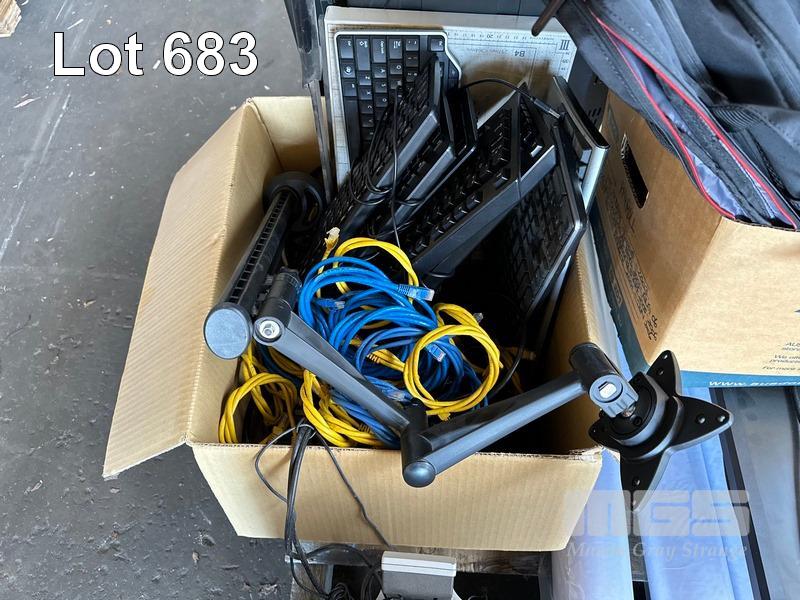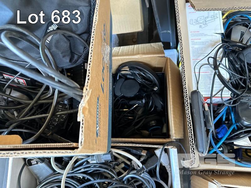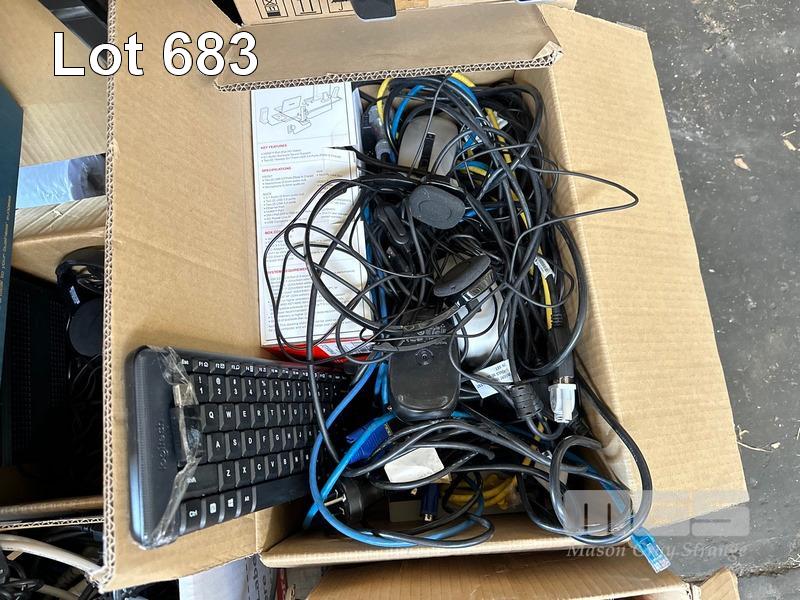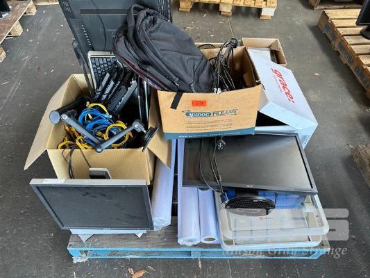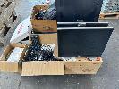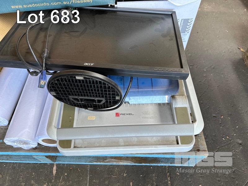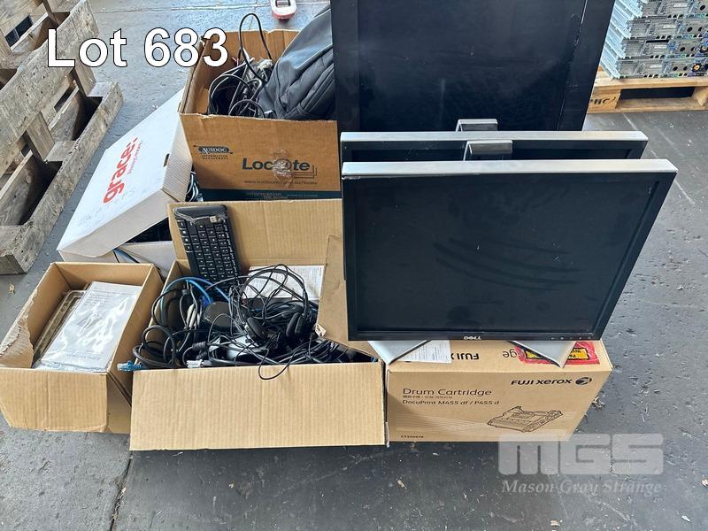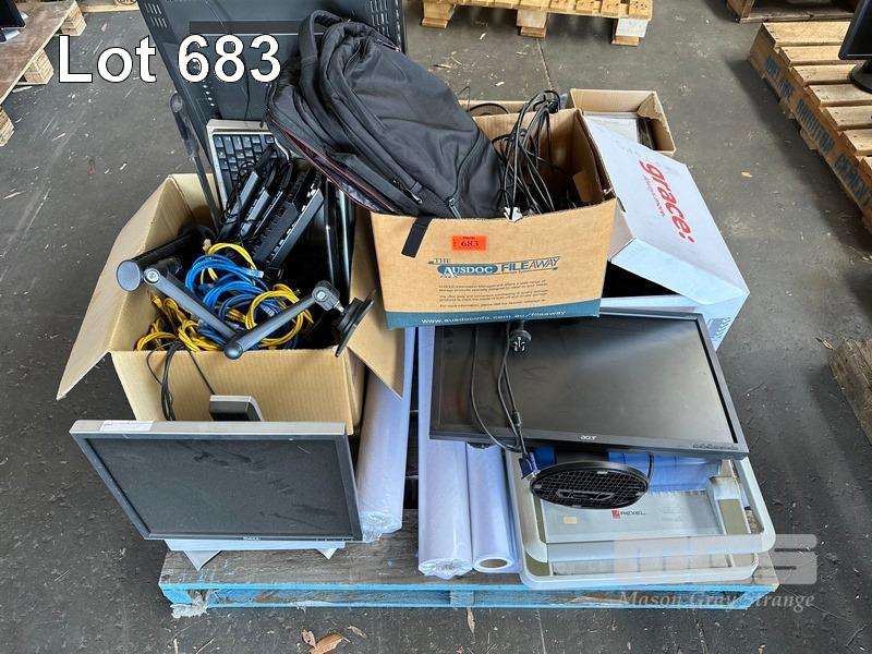 1 x PALLET LOT ASST CABLES, REXEL BINDER, PAPER ROLLS, GUILLOTINE, CABLES, HEADPHONES, MONITORS ETC
