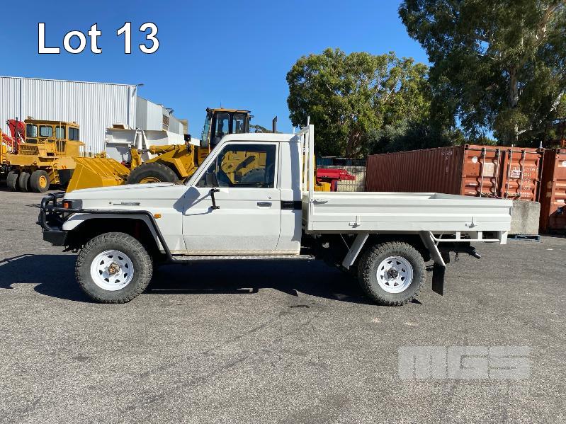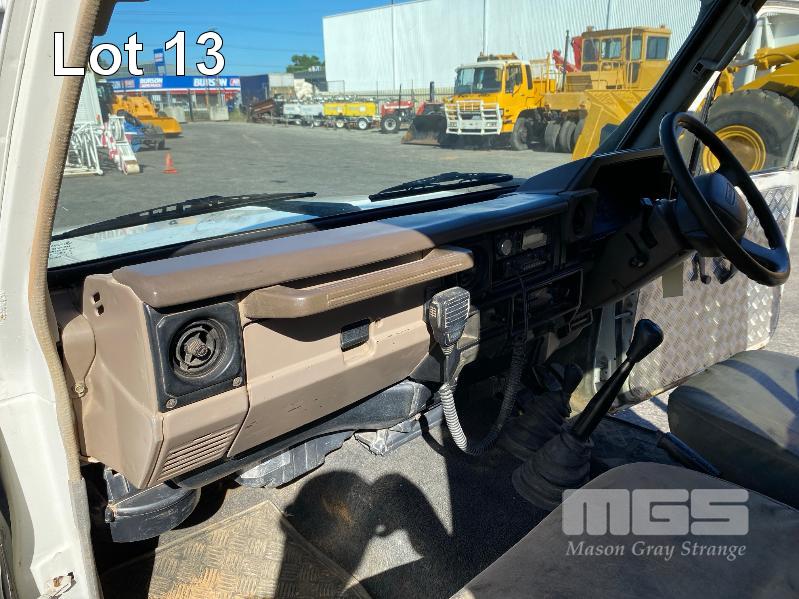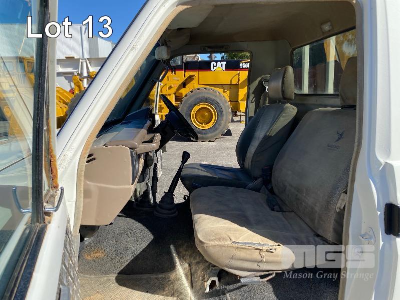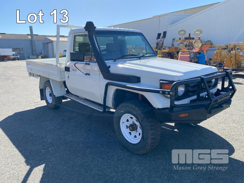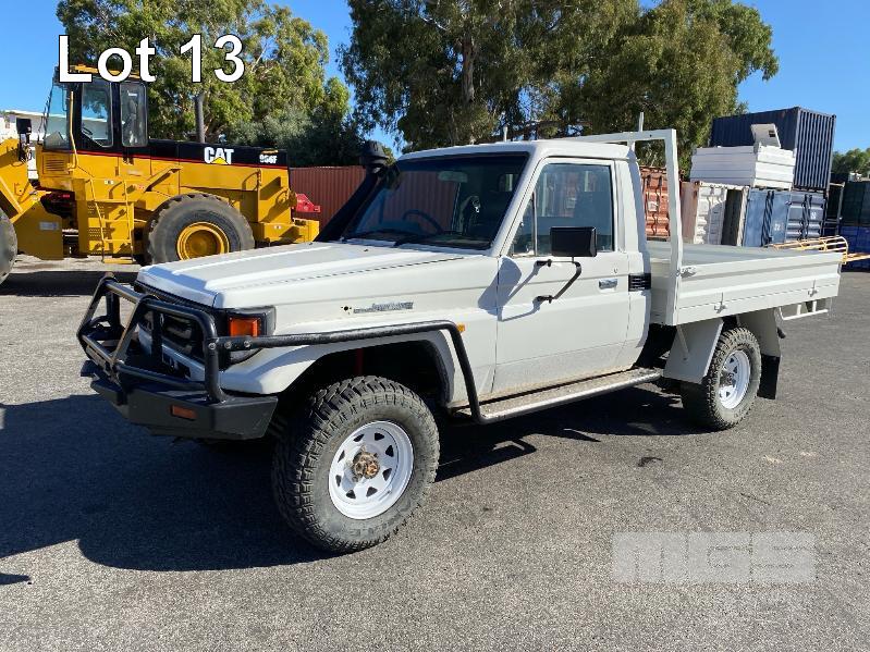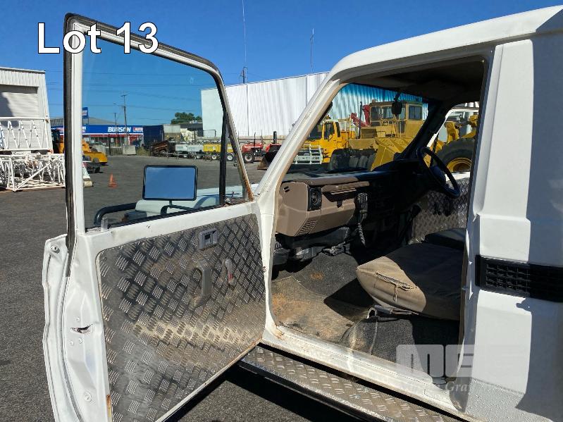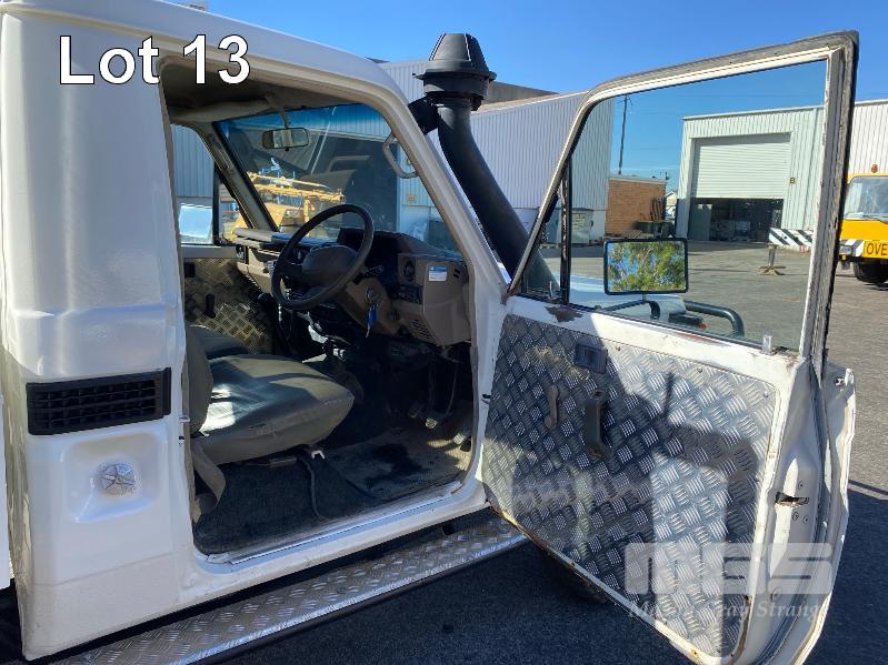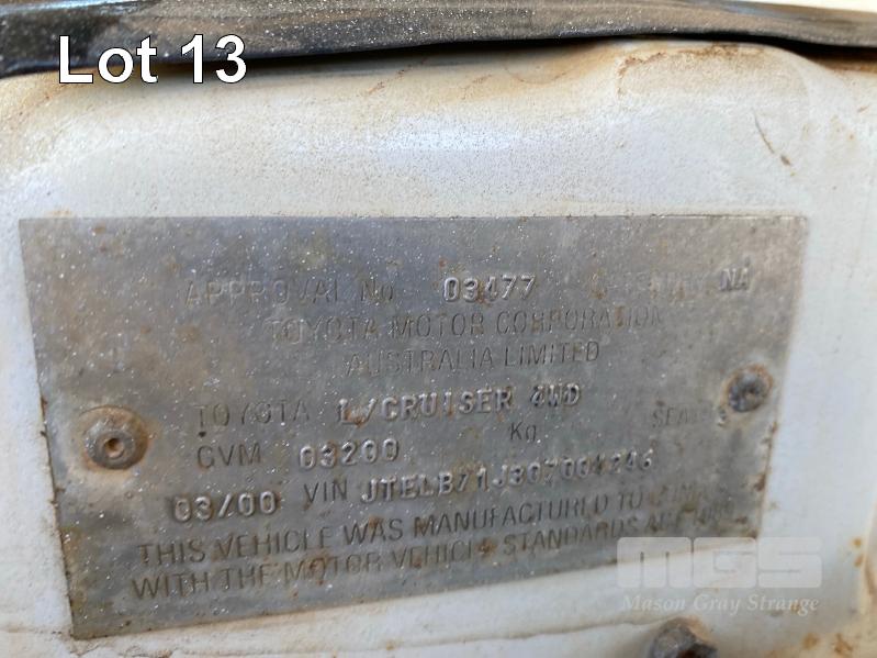 2000 TOYOTA LANDCRUISER HZJ79R-TJMR03 SINGLE CAB TRAYTOP 4x4 REG: NO PLATES VIN: JTELB71J307004246 ODO: 452,654kms SHOWING 6 CYLINDER DIESEL, 5 SPEED MANUAL TRANSMISSION, WHITE DUCO, 2 DOORS, 2 SEAT, 4x4 AIR CON, BULL BAR, CARGO BARRIER, SIDE STEP, STEEL TRAY, TOW PACK 2 WAY RADIO KEY #39 (WITH PAPERS, WITH 1 KEY/S)