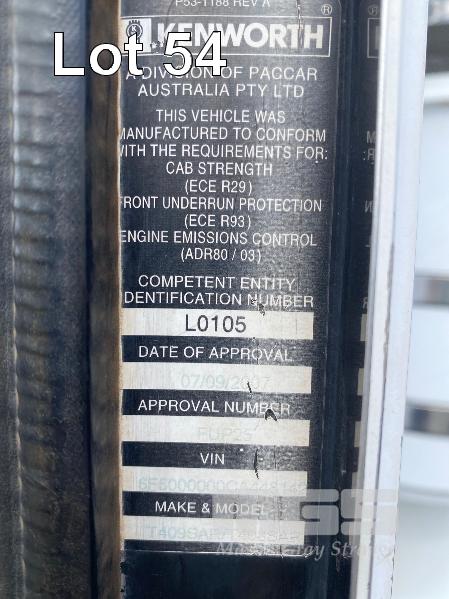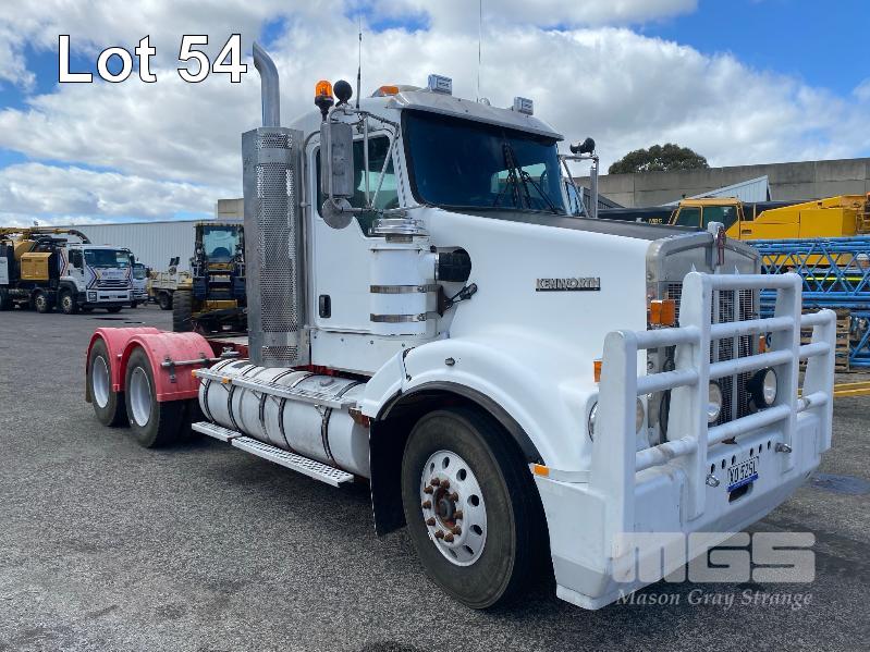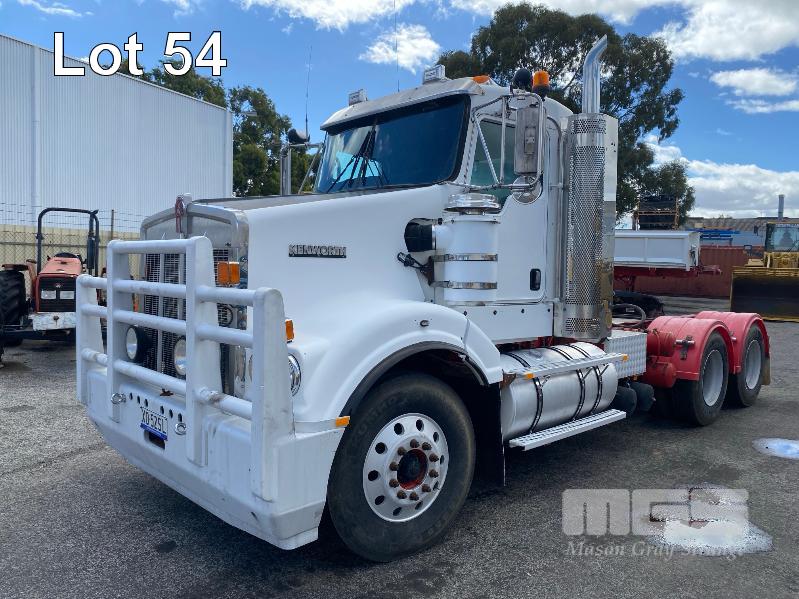 2007 KENWORTH T409 SAR 6x4 LONG NOSE, PRIME MOVER REG: NO PLATES VIN: 6F5000000CA448142 ODO: 812,745 SHOWING HOURS: 28,096 SHOWING CUMMINS, 550 HP TURBO DIESEL, 18 SPEED EATON FULLER MANUAL TRANSMISSION, AIRBAG SUSPENSION, WHITE, 11R22.5 2 DOORS, 2 SEAT, CB RADIO, TIPPER HOIST CONTROLS, BULLBAR, SPOTLIGHTS, AUTO LUBE SYSTEM, QUICK HITCH TURN TABLE KEY #13 (NO PAPERS, WITH 1 KEY/S, NO OWNER'S MANUAL, NO SERVICE BOOKS)