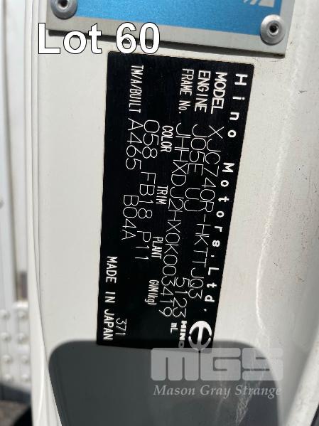 2015 HINO 300 4x2 PANTECH TRUCK REG: SB 19 KJ (SA) VIN: JHHXDJ2HX0K003419 ENG: J05E UJ10302 ODO: 194,762km SHOWING GVM: 8,500 GCM: 12,000 LENGTH: 6m WIDTH: 2.4m AUTO, DIESEL, WHITE DUCO, 2 DOORS, 3 SEAT, AIR CON, STEEL RIMS, REAR ROLLER DOOR, SIDE ACCESS DOOR WITH DHOLLANDIA TAIL GATE LOADER KEY #21 (WITH PAPERS, WITH 1 KEY/S, WITH OWNER'S MANUAL)