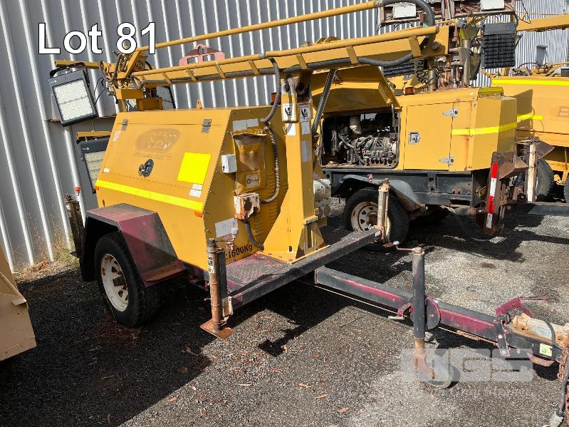 LIGHTING TOWER TRAILER, SINGLE AXLE, HYDRAULIC BOOM LIFT, REG: U46 393 (VIC), LED LIGHTS, YANMAR 3 CYL DIESEL ENGINE, MOD: 3TNE78A-GIA, LSA ALTERNATOR, 415V 3 PHASE, 13KVA, 50mm COUPLER WITH JOCKEY WHEEL