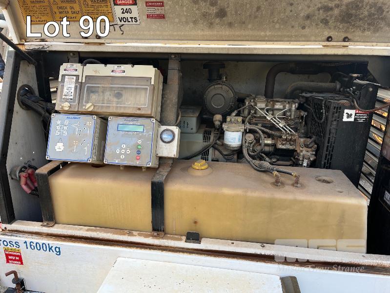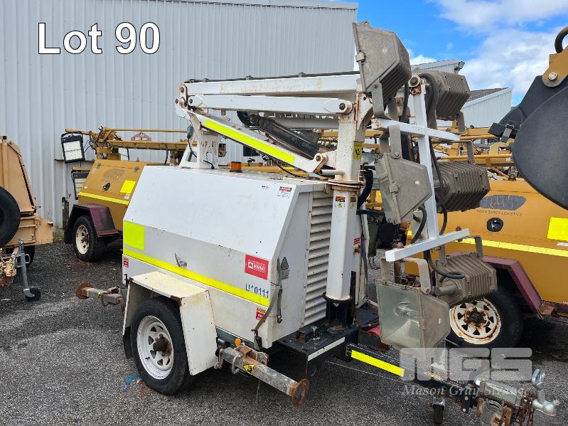 LIGHTING TOWER TRAILER, SINGLE AXLE, HYDRAULIC BOOM LIFT, VIN: 6JE7RAMLTCLU01011, HOURS: 3,277, PERKINS 3 CYL DIESEL ENGINE, MOD: 403D-11, 240V OUTLETS