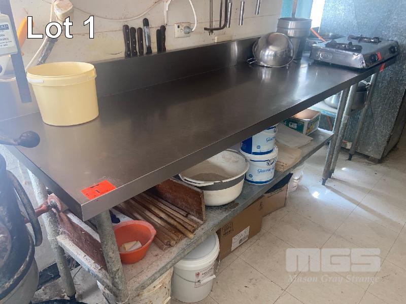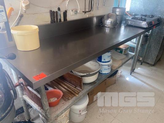 BAKERS BENCH, STAINLESS STEEL TOP WITH SPLASHBACK & LOWER SHELF, 2000 (L) x 660mm (D)
