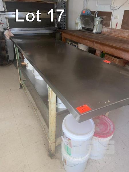BAKERS PREP BENCH, STAINLESS STEEL TOP, 2440 (L) x 780 (D) x 940mm (H) WITH 1 x STAINLESS STEEL SHELF