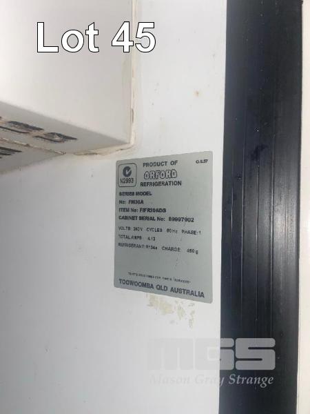 DISPLAY FRIDGE, ORFORD 2 DOOR , GLASS. MOD: FM30A 6 TRAYS, 240V RUNNING OK.