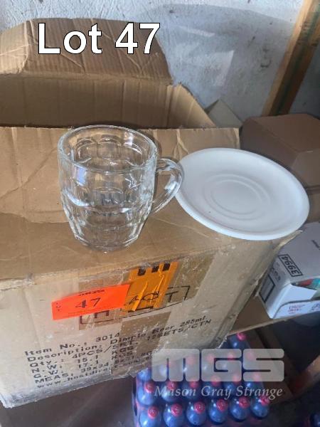 28 x DIPPLE GLASS MUGS, 285ml, NEW & 20 x WHITE SAUCERS NEW.