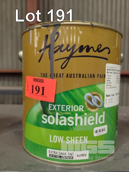 1 X 4.0 L TIN HAYMES SOLARSHEILD EXTERIOR LOW SHEEN PAINT - EXTRA DARK TINT. ** NOTE PAINT IS TINTED CHECK LABEL!! **