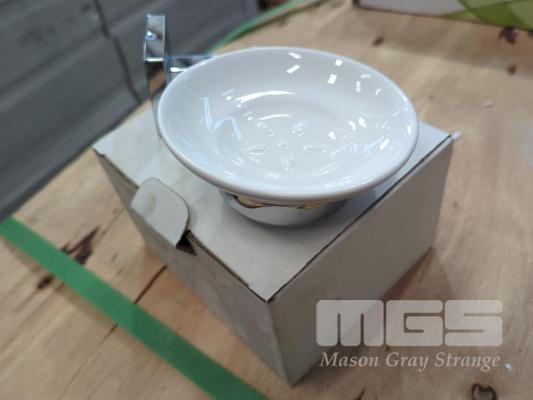 20 X WALL MOUNT SOAP DISHES, CHROME, WITH FITTINGS. ALL NEW (2 X CARTONS).