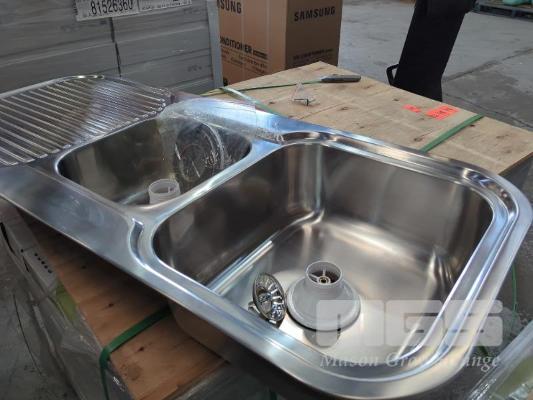 1 X DOUBLE BASIN STAINLESS STEEL SINK. ALL NEW.