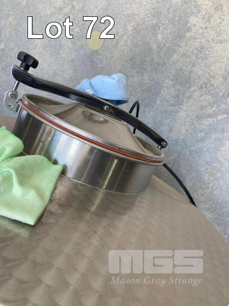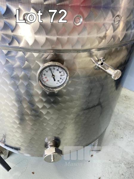 AGINOX JACKETED STAINLESS STEEL UPRIGHT TANK 1076 LITRE 304 S/S S/NO: C00880 CENTRE BASE OUTLET WITH VALVE INSPECTION HATCH TO TOP TEMPERATURE GAUGE HIGH/LOW VOLUME SENSORS , FLOAT GAUGE.