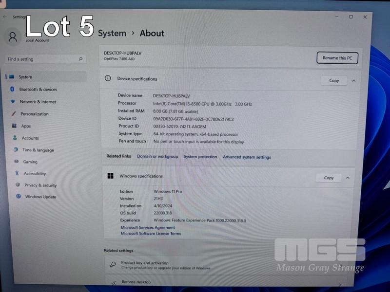 ALL-IN-ONE PC, DELL OPTIPLEX 7460, CORE i5 8500 (8TH GEN) @ 3GHz, 8GB DDR4 RAM, 512GB NVMe M.2 SSD, INBUILT 23.8" FHD WIDESCREEN (1920x1080), INTEL HD VIDEO, WEBCAM, 5 x USB, 1 x USB-C, WINDOWS 11 PRO INSTALLED, KEYBOARD & MOUSE S/N:8VNCNX2