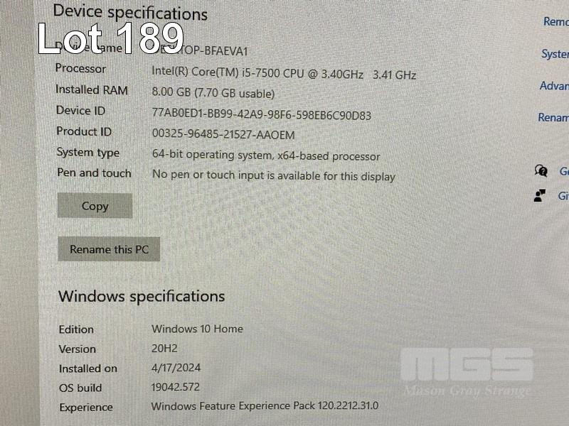 ALL-IN-ONE PC, DELL OPTIPLEX 7450, CORE i5 7500 (7TH GEN) @ 3.4GHz, 8GB DDR4 RAM, 512GB SSD, INBUILT 23.8" FHD WIDESCREEN (1920x1080), INTEL HD VIDEO, WEBCAM, 7 x USB, 1 x USB-C, WINDOWS 10 HOME INSTALLED, KEYBOARD & MOUSE S/N:FS88BS2