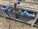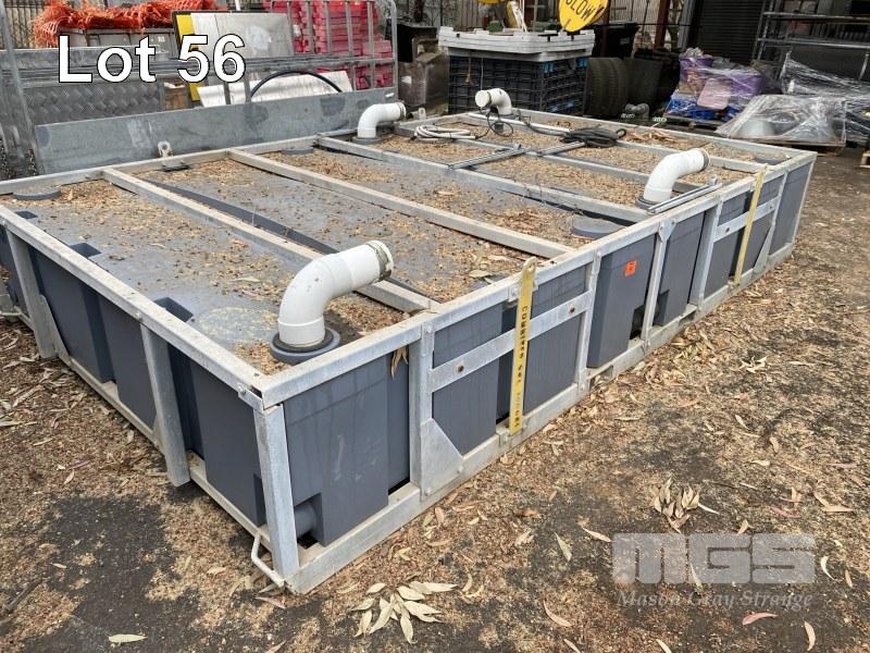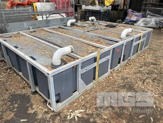 ABLUTION BLOCK, SEPTIC/WASTE SYSTEM COMPRISING 2 x POLY TANKS, MEASURING 1800 x 2300 x 500mm MOUNTED IN ALV STEEL FRAME 3860 x 2380 x 700mm (H) PLUMBED WITH VALVES & FITTINGS