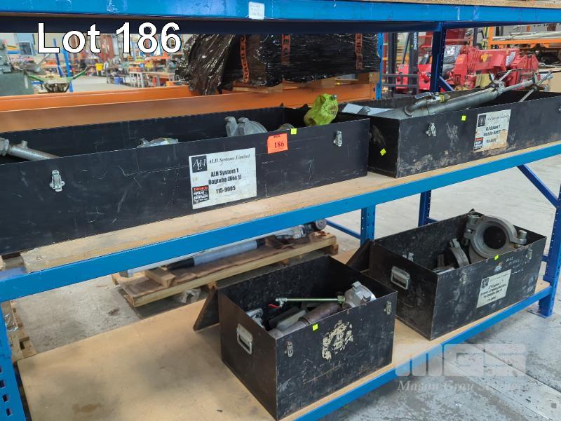 GAS MAIN PIPELINE TOOLS, ALH SYSTEMS LIMITED, BAG TUBE SYSTEM MOD: 115-9005 COMPRISING 4 x BAG TUBE ASSEMBLIES, INFLATION CONTROLLERS, BAG TUBE PLUG INSERTION, SADDLES, ETC CONTENTS 4 x STEEL STORAGE CASES 2 x SHELVES