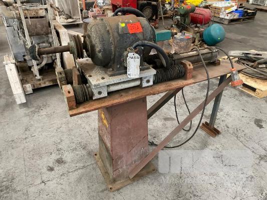 FABRICATED BUFFING/POLISHING MACHINE FITTED WITH PUMATIC SLIDING RAMS & GUIDE RAILS ON PEDISTAL STAND, 415V