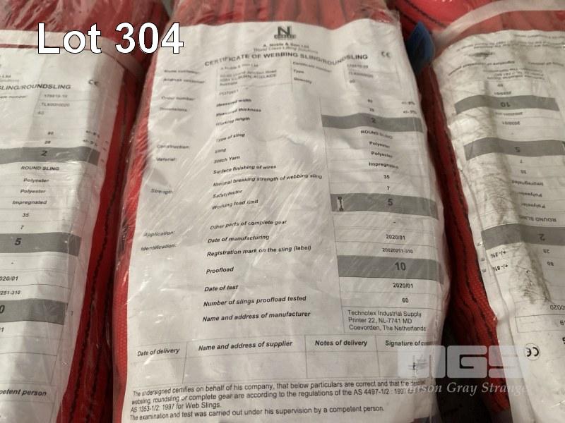 5 x LIFTING SLINGS, NOBLES & SONS 5 T x 2m RED, NEW