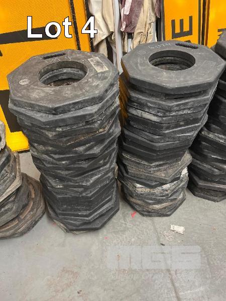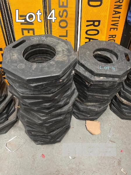LARGE QUANTITY CONE SHAPE PLASTIC BOLLARDS & BASES, VARIOUS CONDITIONS