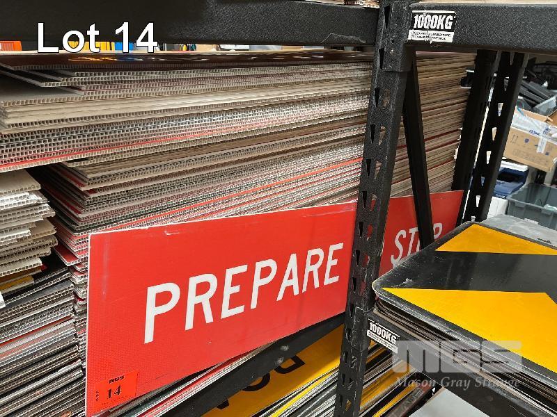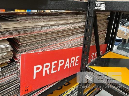 LARGE QUANTITY 'PREPARE TO STOP' REFLECTIVE ROAD SIGNS, CORFLUTE, 1200 x 300mm, APPROX 110 TOTAL