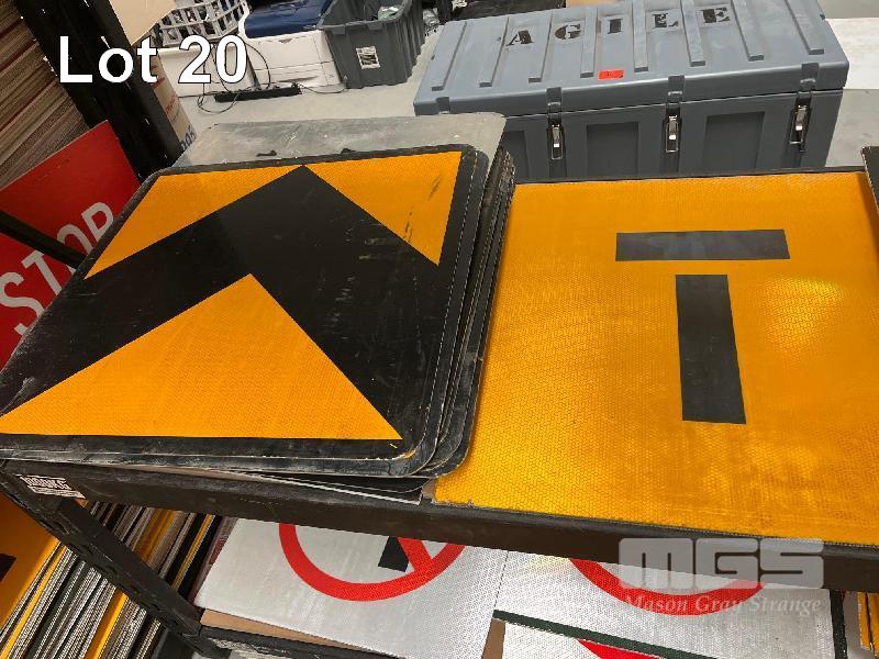 APPROX 50 x ASSORTED DIRECTIONAL REFLECTIVE ROAD SIGNS, CORFLUTE & METAL, 600 x 600mm