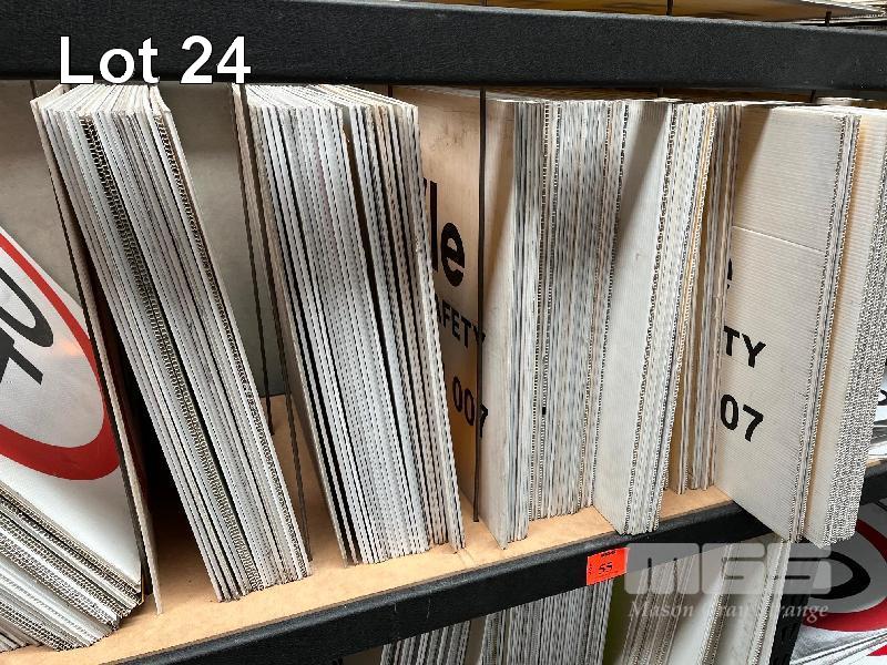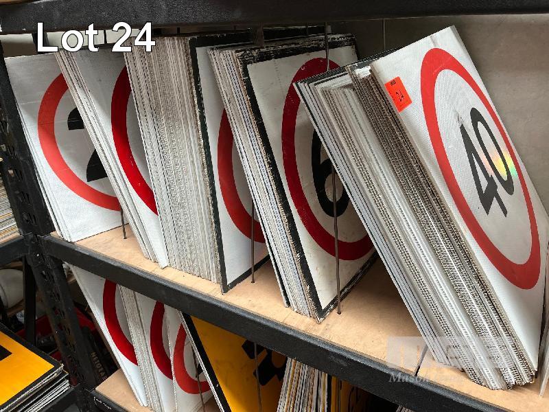 LARGE QUANTITY REFLECTIVE ROAD SIGNS, ASSORTED SPEED SIGNS, LOOSE ROAD SURFACE SIGNS, 'END ROAD WORK' 600 x 600mm APPROX 180 TOTAL