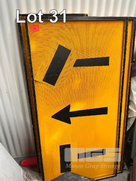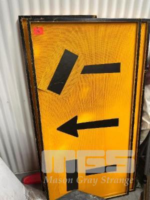 2 x LARGE STEEL FRAME DIRECTIONAL REFLECTIVE ROAD SIGNS, 1800 x 900mm, 1 x LARGE STEEL FRAME 'ROAD WORK AHEAD' REFLECTIVE ROAD SIGN, 1800 x 600mm