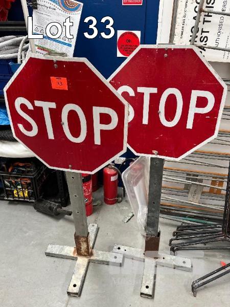2 x FREESTANDING STOP SIGNS, STEEL, 1500mm (H)