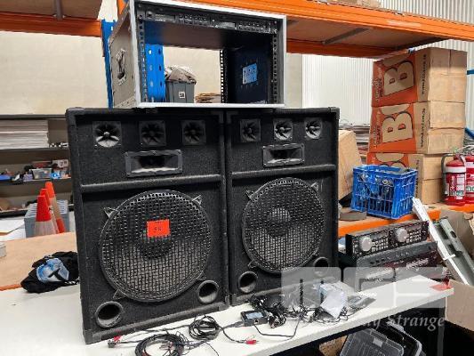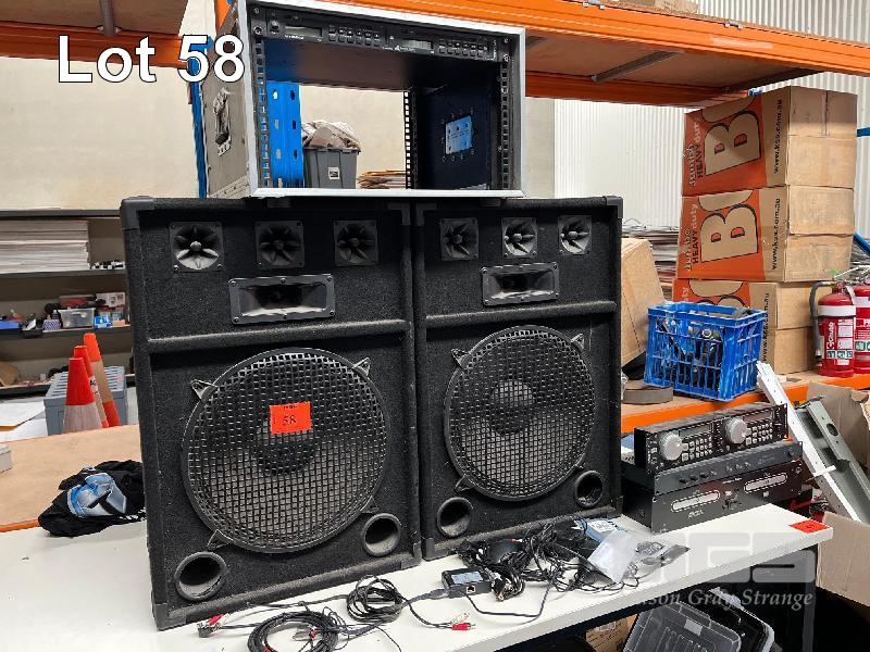 2 x LARGE SPEAKERS, DUAL CD PLAYER, AMERICAN AUDIO MIXER, MOD: MCD-510, AUSTRALIAN MONITOR MIXER