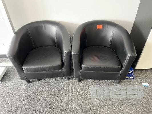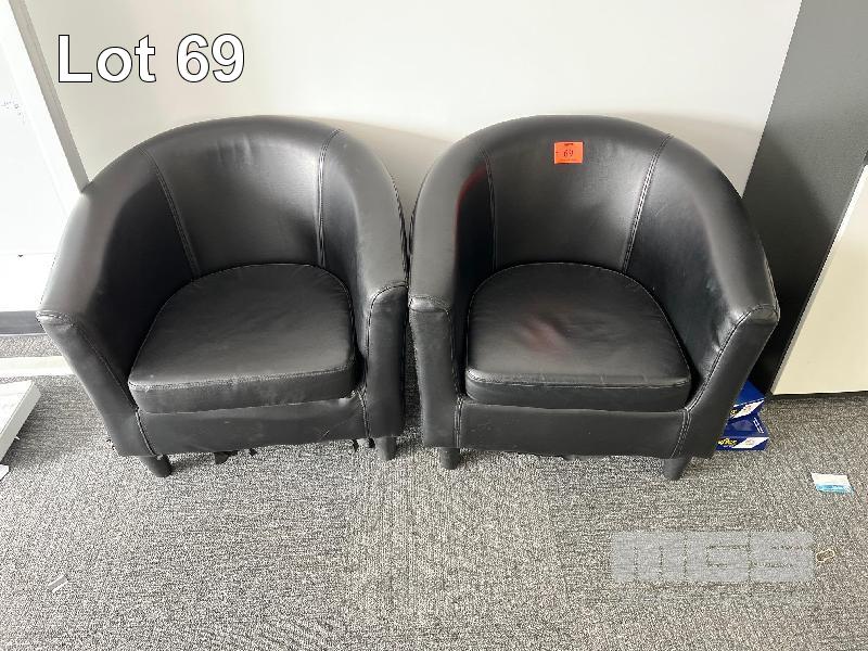 2 x BLACK VINYL TUB CHAIRS & MOBILE WHITE BOARD, 1850 x 1150mm