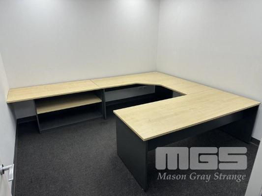 EXECUTIVE DESK, BEECH AND CHARCOAL LAMINATE, U SHAPED