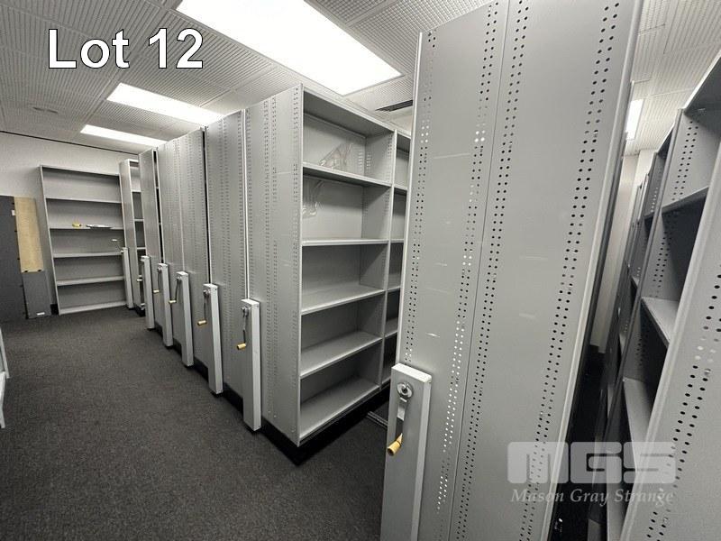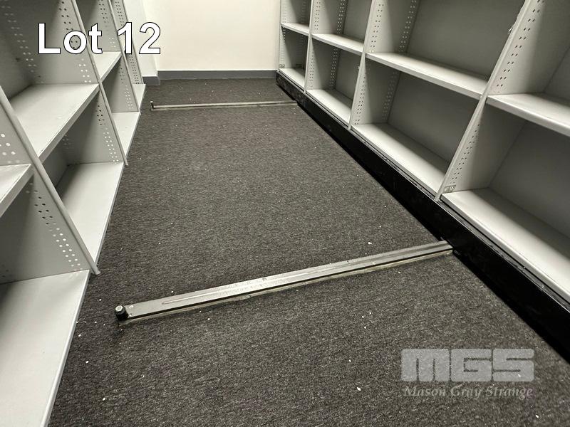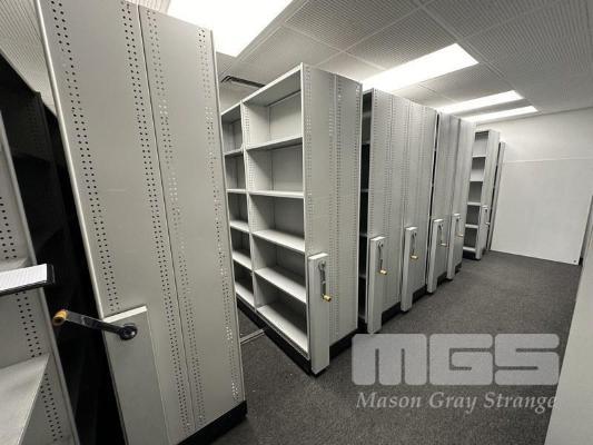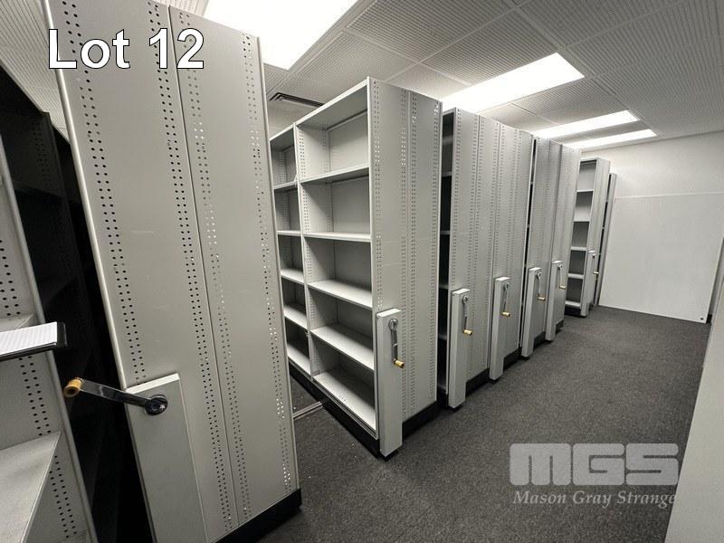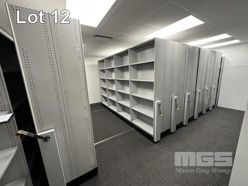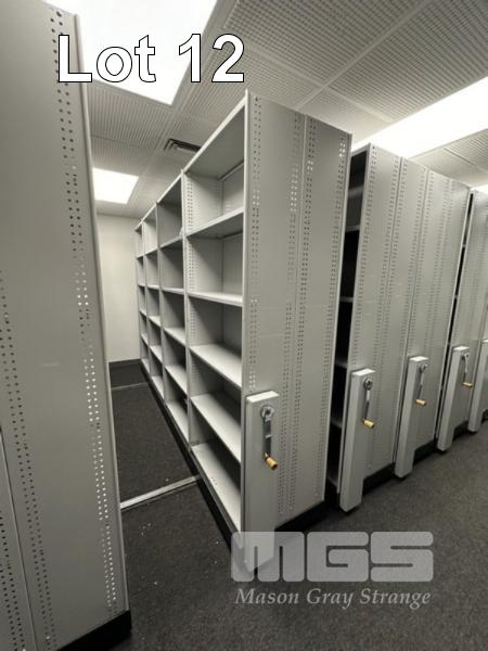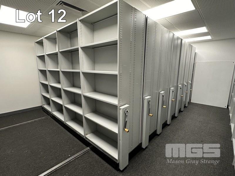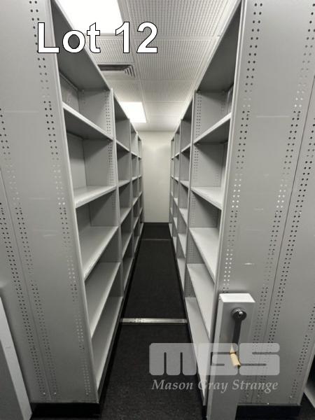 COMPACTUS 7 DOUBLE SIDED BAYS EACH 4 BAYS DEEP, EACH BAY 234 x 90CM x 30CM DEEP, 6M TRACK