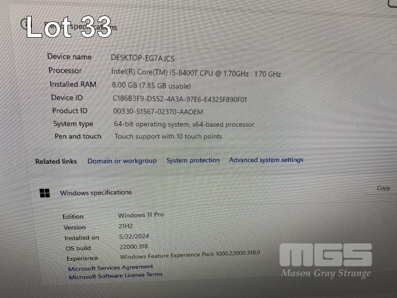 ALL-IN-ONE PC, LENOVO V530-24ICB, TYPE 10UW, CORE i5 8400T (8TH GEN) @ 1.7GHz, 8GB DDR4 RAM, 256GB NVMe M.2 SSD, INBUILT 23.8" TOUCHSCREEN (1920x1080), DVD-RW, INTEL UHD GRAPHICS 630, WEBCAM, Wi-Fi, BLUETOOTH, WINDOWS 11 PRO INSTALLED & POWER SUPPLY (NO KEYBOARD, NO MOUSE) S/N:MP1F3H10