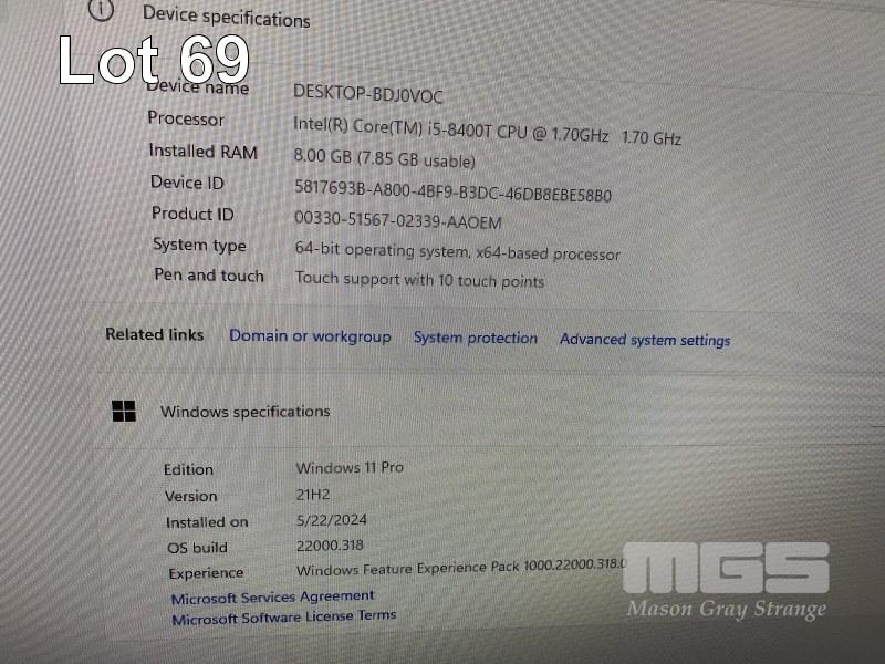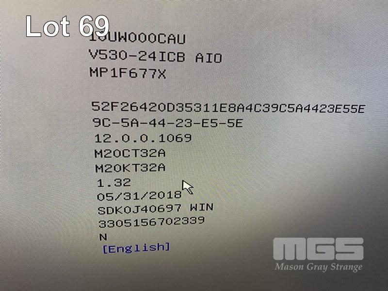 ALL-IN-ONE PC, LENOVO V530-24ICB, TYPE 10UW, CORE i5 8400T (8TH GEN) @ 1.7GHz, 8GB DDR4 RAM, 256GB NVMe M.2 SSD, INBUILT 23.8" TOUCHSCREEN (1920x1080), DVD-RW, INTEL UHD GRAPHICS 630, WEBCAM, Wi-Fi, BLUETOOTH, WINDOWS 11 PRO INSTALLED & POWER SUPPLY (NO KEYBOARD, NO MOUSE) S/N:MP1F677X